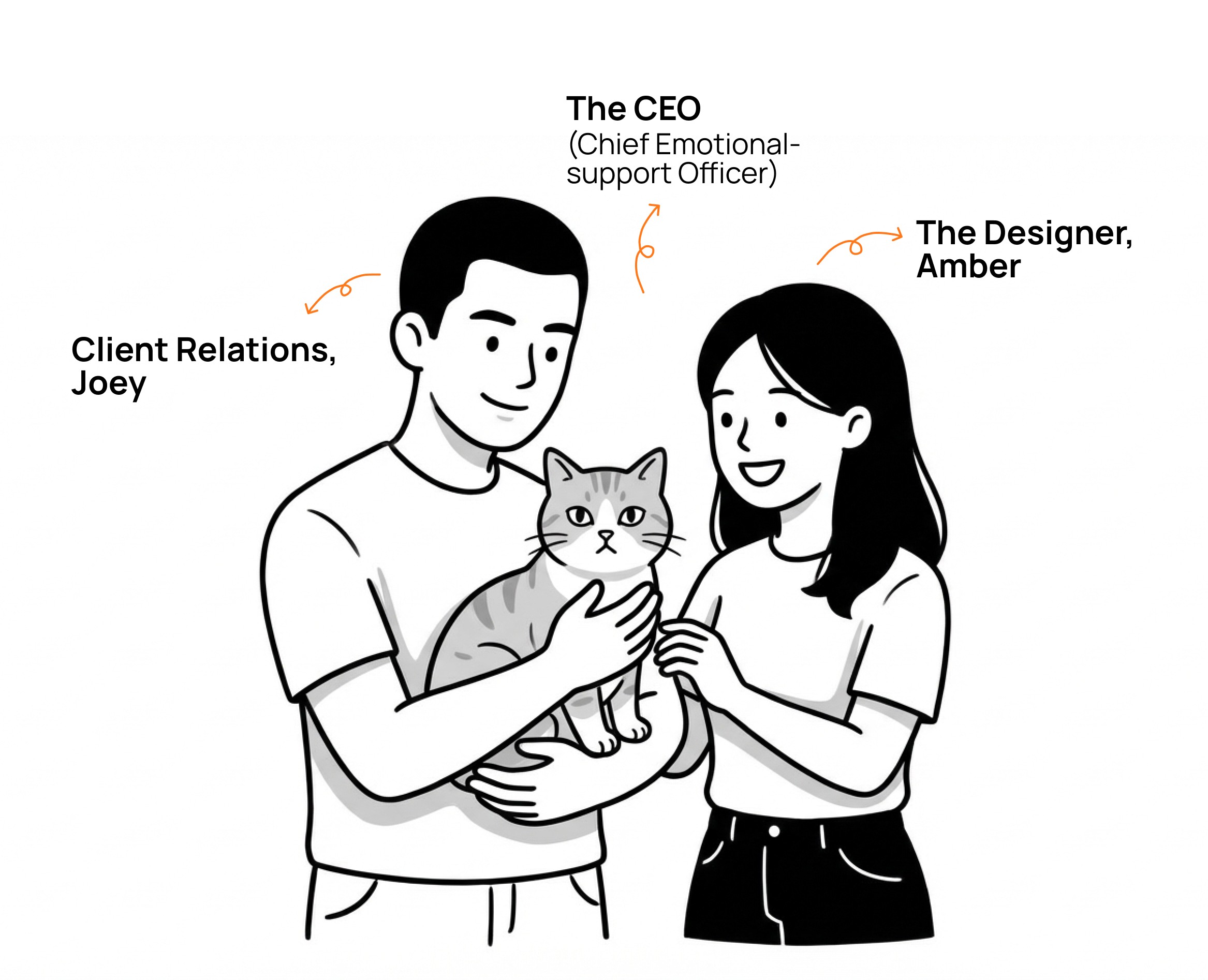 I’m Amber — the designer on the team. Behind the scenes, my husband, Joey, helps manage communication so the process stays smooth and easy.