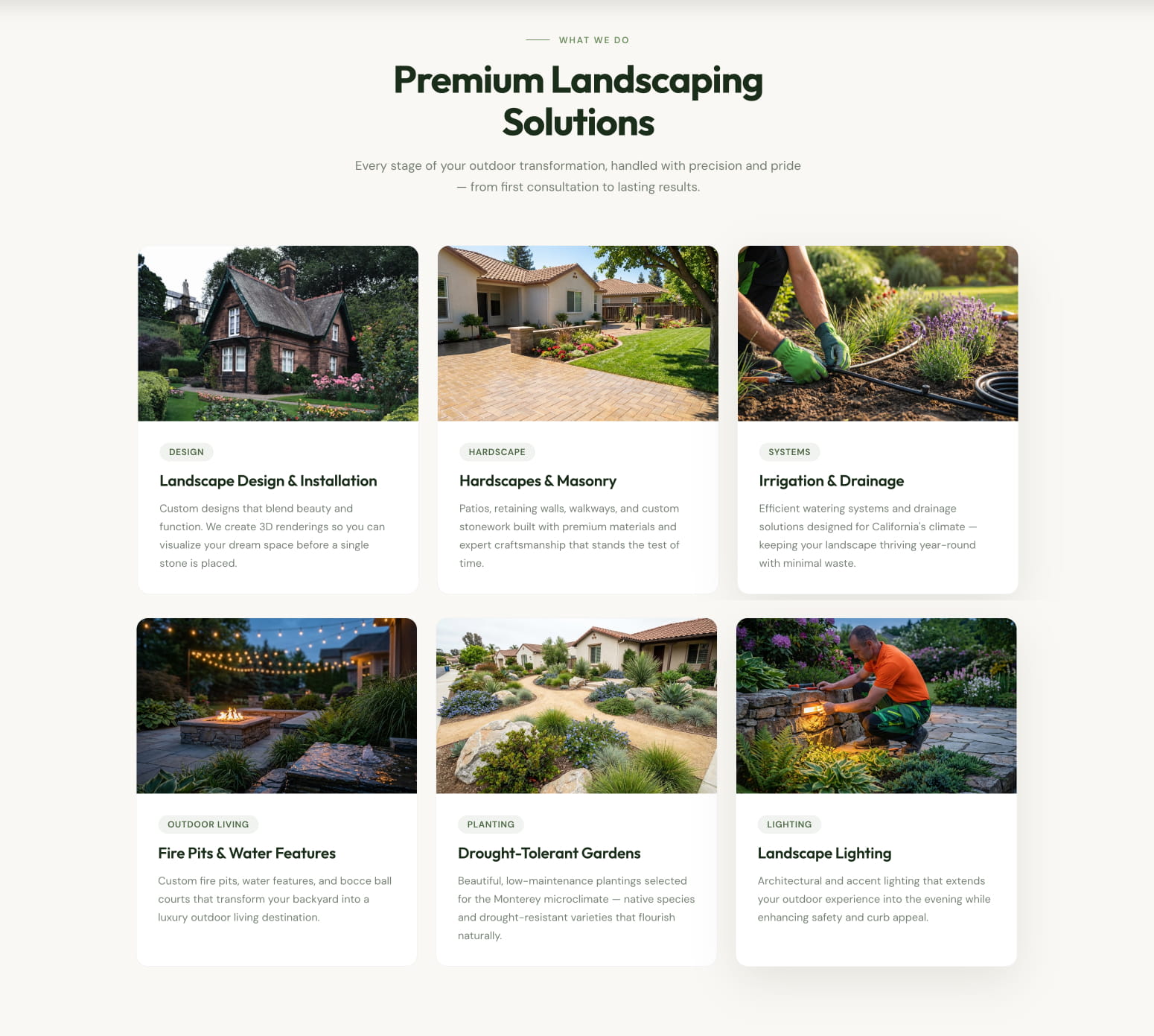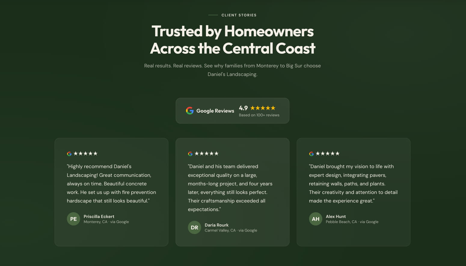 Built to convert high-value homeowners who are comparing landscapers, checking reviews, and requesting estimates.