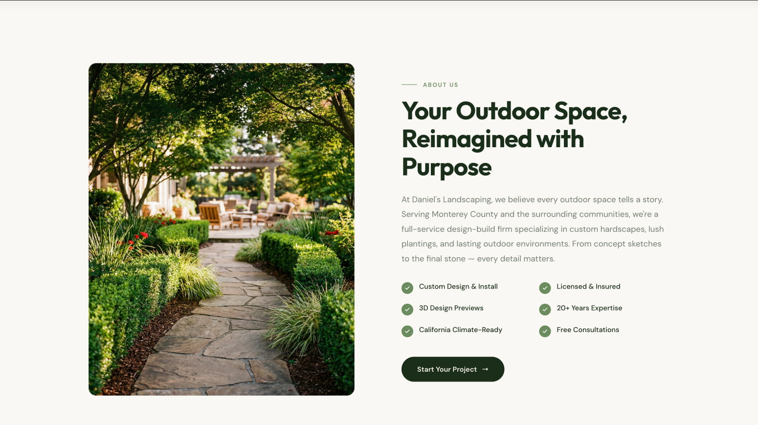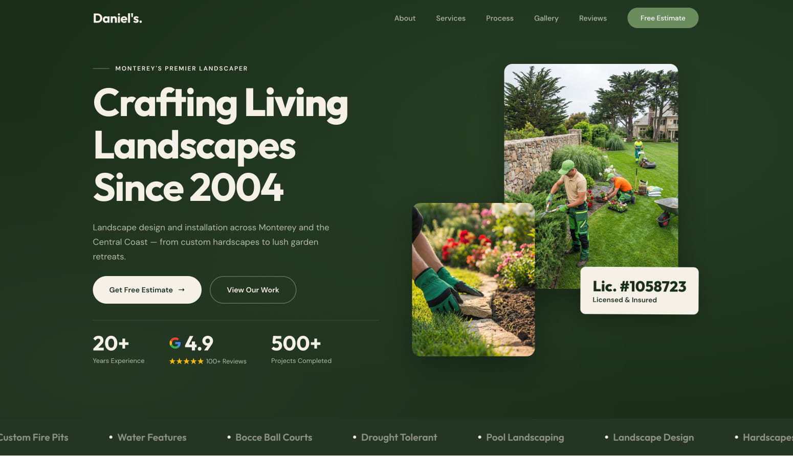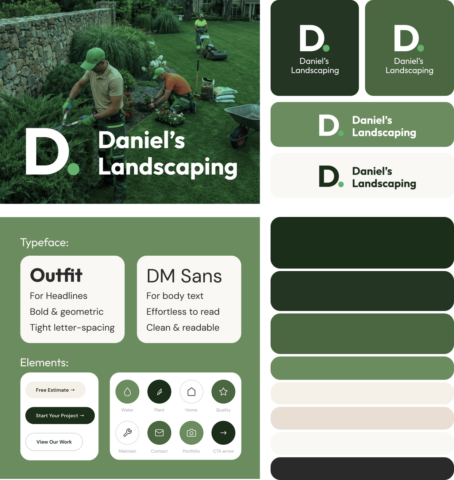 The old identity blended in with every other landscaping company. We stripped it back to what makes Daniel's different — precision, craftsmanship, and a design-build approach closer to architecture than lawn care.