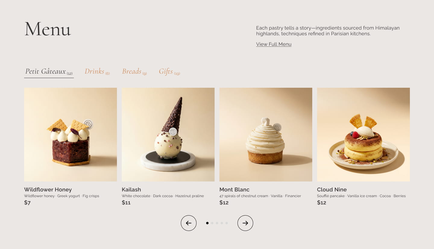 The Challenge: 12+ pastries, 6 drinks, breads, gift boxes — without overwhelming visitors.