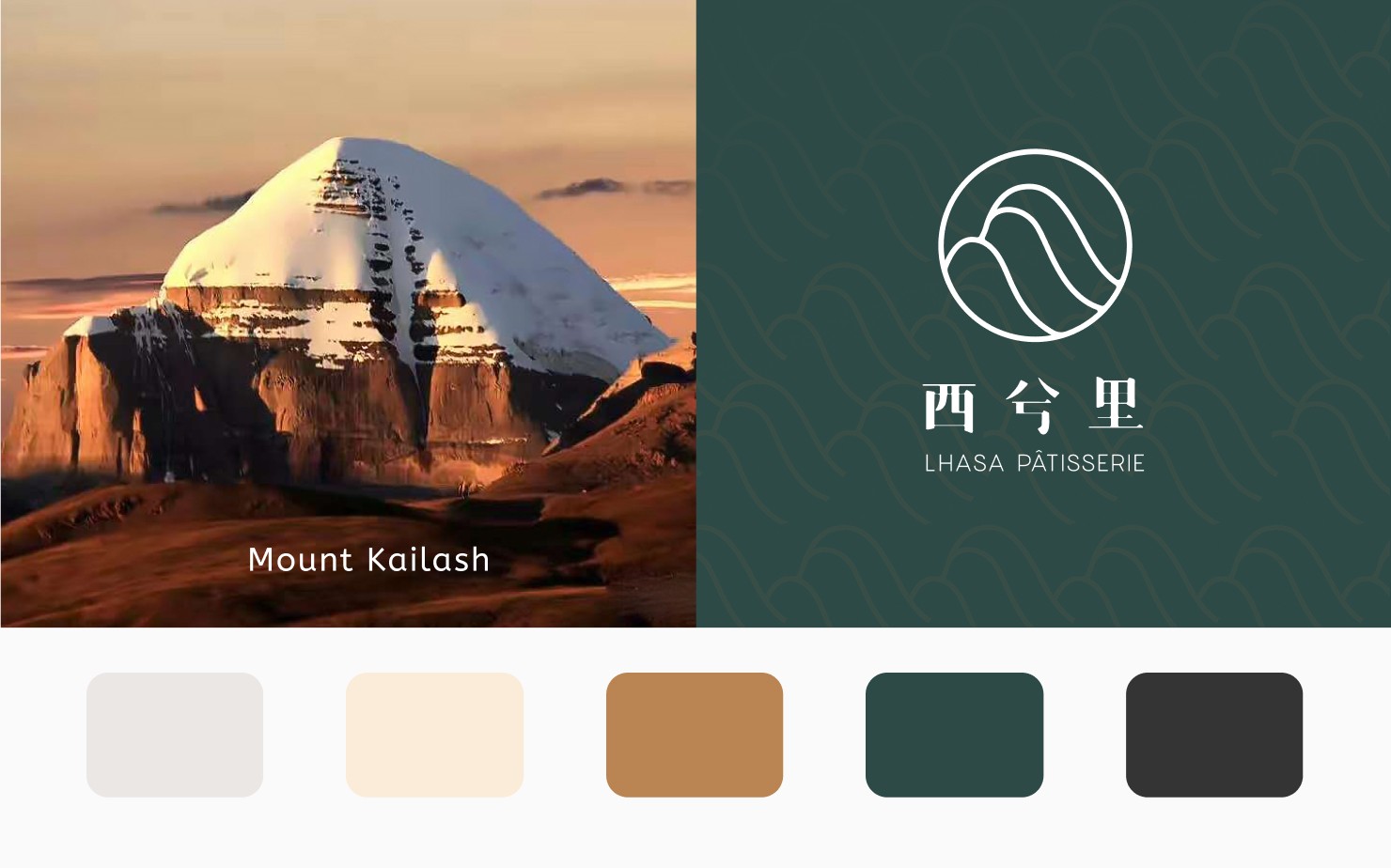The logo combines a mountain motif — representing Mount Kailash, sacred peak of Tibet — with bilingual typography that bridges Eastern heritage and Western technique.